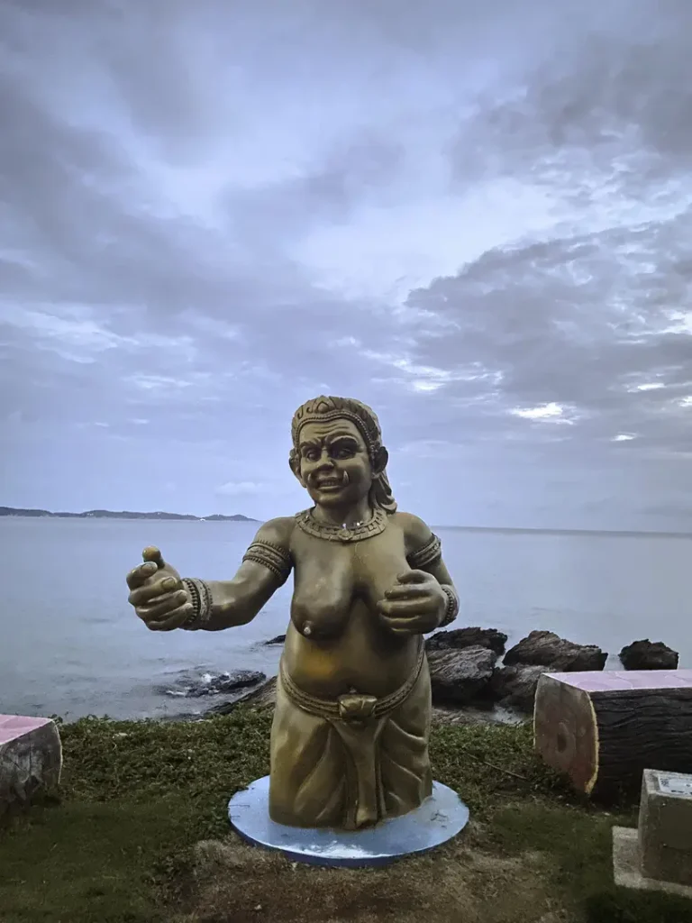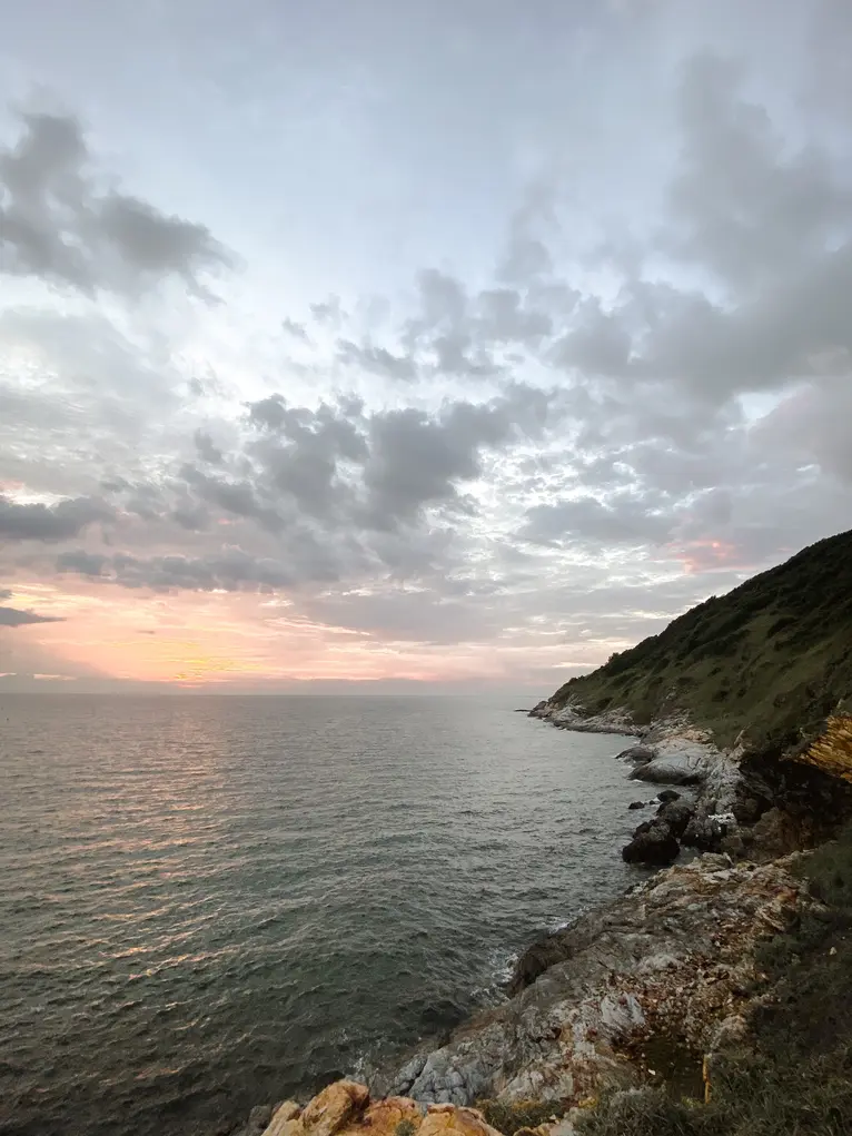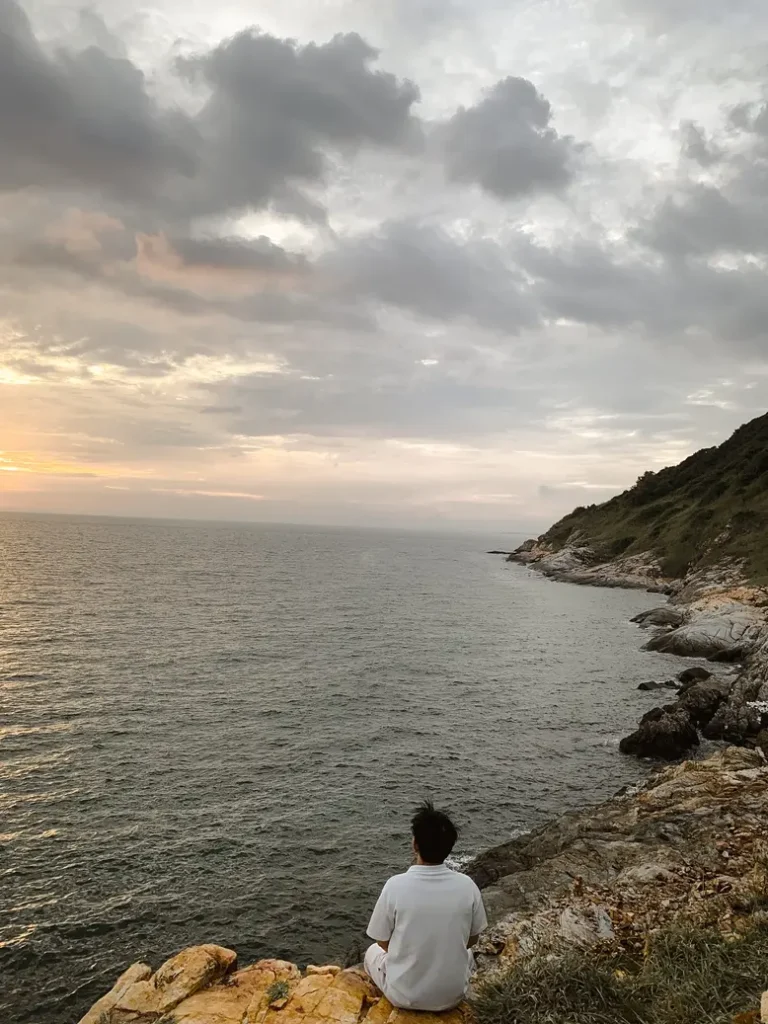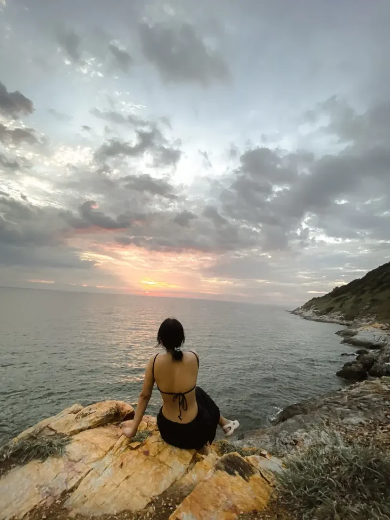 จากนั้นคุณเดินไปตามสะพานไม้สู่จุดชมวิว เราเห็นคู่รักมากมายถ่ายภาพ — เป็นจุดยอดนิยม! บรรยากาศดีมากด้วยลมทะเลเซาๆ และพระอาทิตย์ตกสวยงามค่อยๆ จมลงใต้ขอบฟ้า