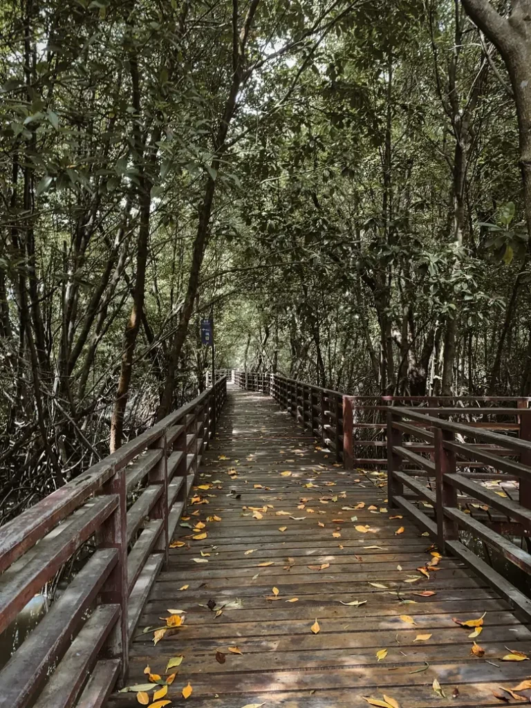 - สะพานไม้ในป่าชายเลน — เข้าใกล้รากโกงกางและธรรมชาติ ได้ยินเสียงนกและเสียงใบไม้แสลง สงบมาก