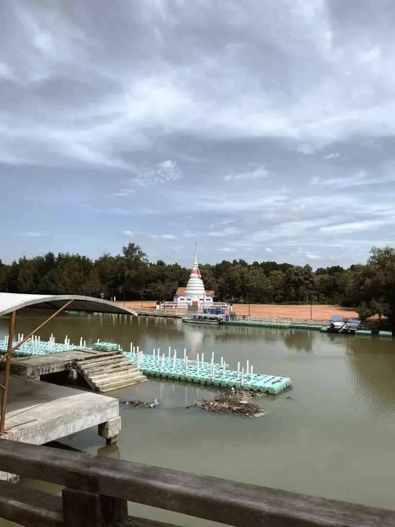- 11:00–12:30 น. – ศูนย์การเรียนรู้ป่าชายเลน + พระเจดีย์กลางน้ำ