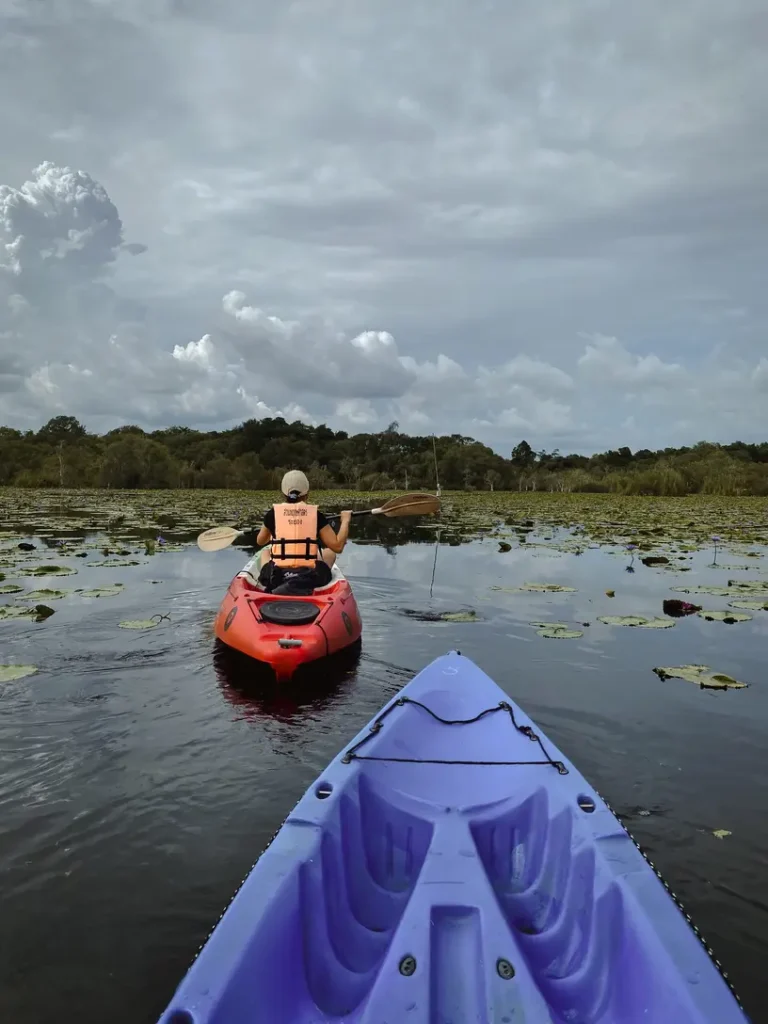 วันหนึ่งขณะที่เลื่อนดู TikTok ฉันเจอคลิปของคนที่กำลังพายเรือคายัคที่สวนพฤกษศาสตร์ระยอง ทิวทัศน์ของป่าสนเข็มทำให้ฉันหลงใหลเลย! ฉันเพิ่งลองพายเรือคายัคครั้งแรกในวังเวียงและชอบมาก การดูคลิปนั้นทำให้อยากไปอีก